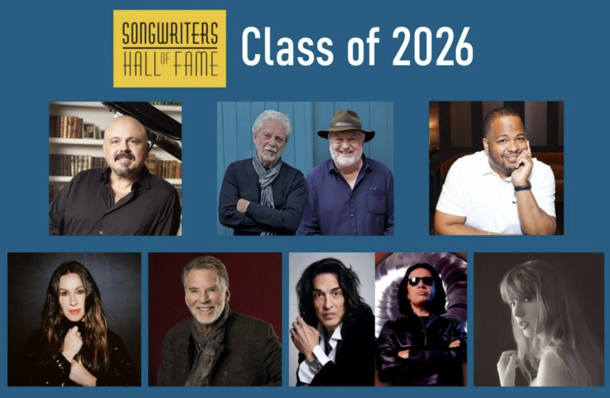 This year’s inductees include Taylor Swift, Walter Afanasieff, Terry Britten and Graham Lyle, Paul Stanley and Gene Simmons of KISS, Kenny Loggins, Alanis Morissette, and Christopher “Tricky” Stewart.