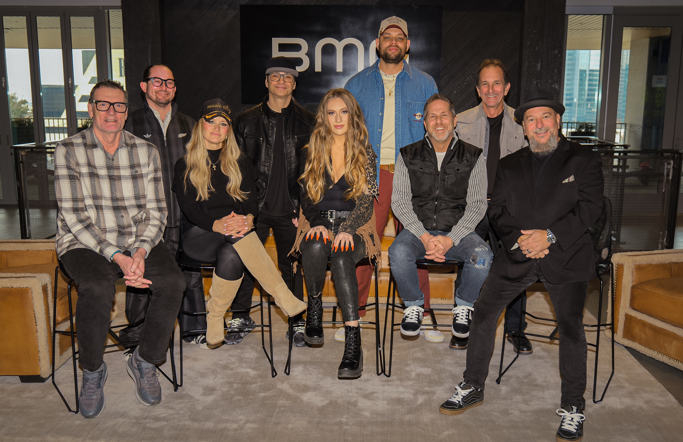Pictured (back row): Rusty Gaston, (CEO Sony Music Publishing Nashville); (middle row, L-R): Kent Earls (Partner Verse 2 Music), Nikki Boon (Manager, Neon Coast); (front row, L-R): Kane Brown and Jonny Capeci. Photo: Riley Mays